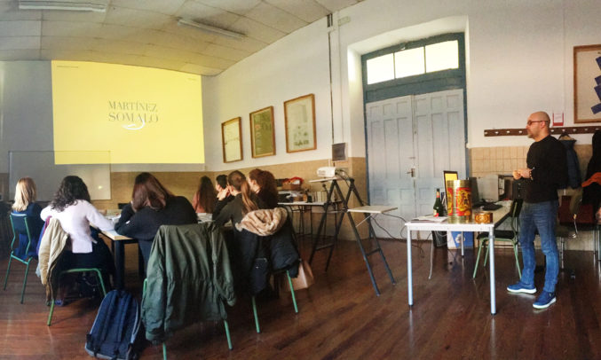 El binomio formado por la empresaria y el diseñador lleva más de 20 años trabajando en la identidad de Martínez Somalo y el diseño del embalaje de sus productos. El trabajo de Sidecar es un claro ejemplo del perfecto entendimiento que hay entre ambos, algo que trasmitieron a los alumnos de manera unánime.