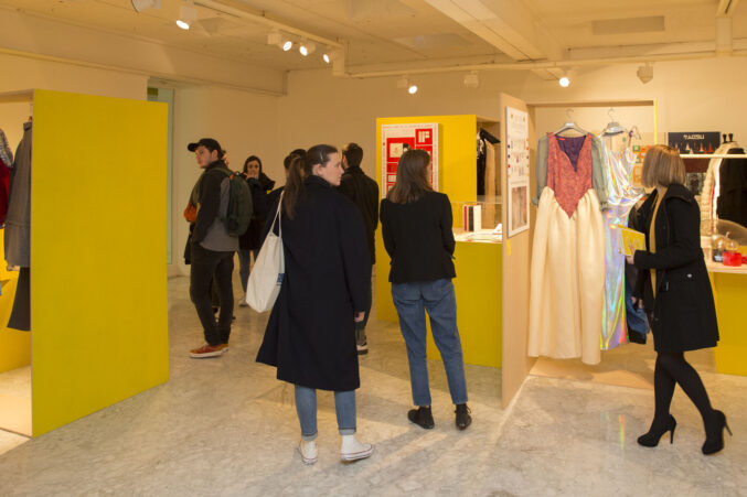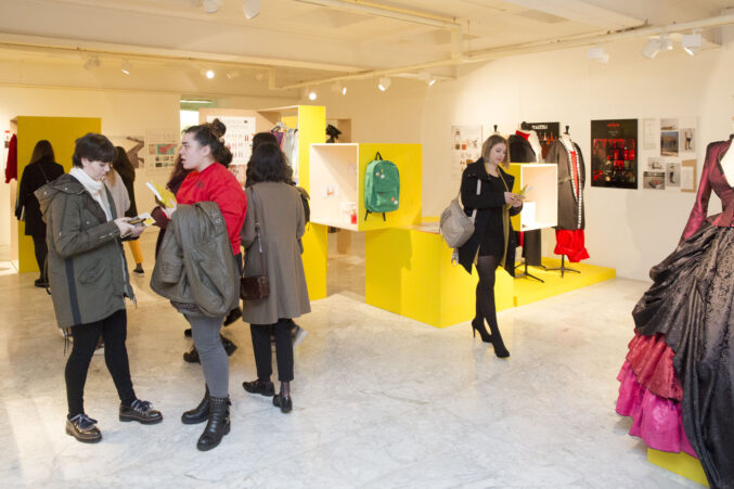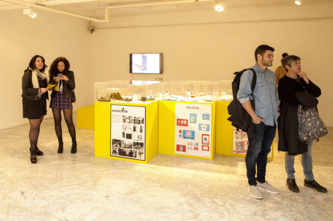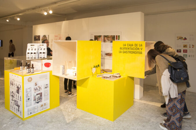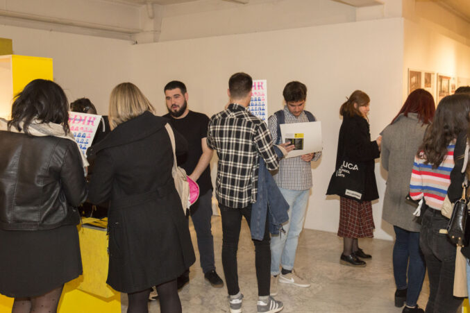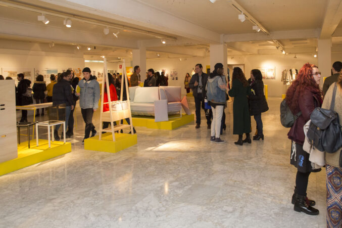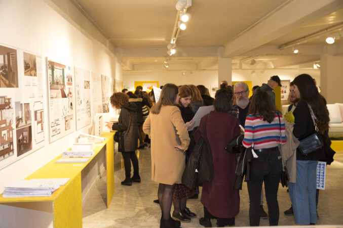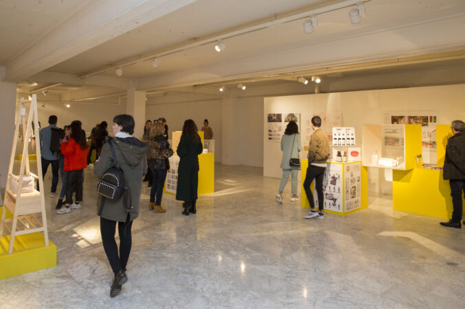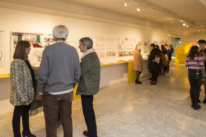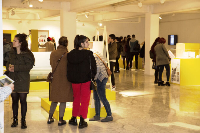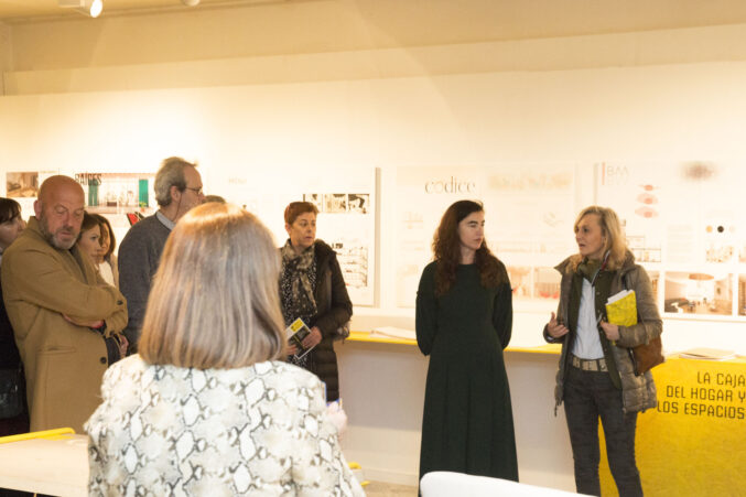 Tras la entrega de catálogos a los titulados y las fotos de grupo, bajamos a la Sala de Exposiciones donde se inauguró la exposición La Caja Amarilla, muestra que recoge los Trabajos Fin de Estudios 2018.
