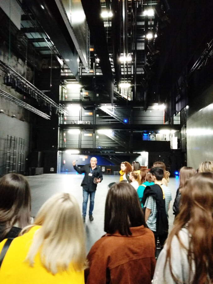 Una vez secos, nos reunimos con Raquel Fernández, ex compañera de la Esdir, y actualmente profesora de la Escuela Superior de Arte del Principado de Asturias, que nos agasajó con una visita guiada por todo el edificio, enseñándonos las instalaciones de la Escuela.