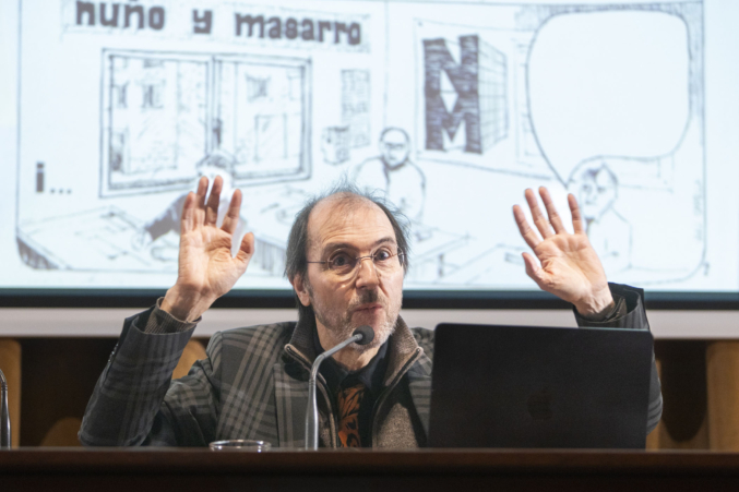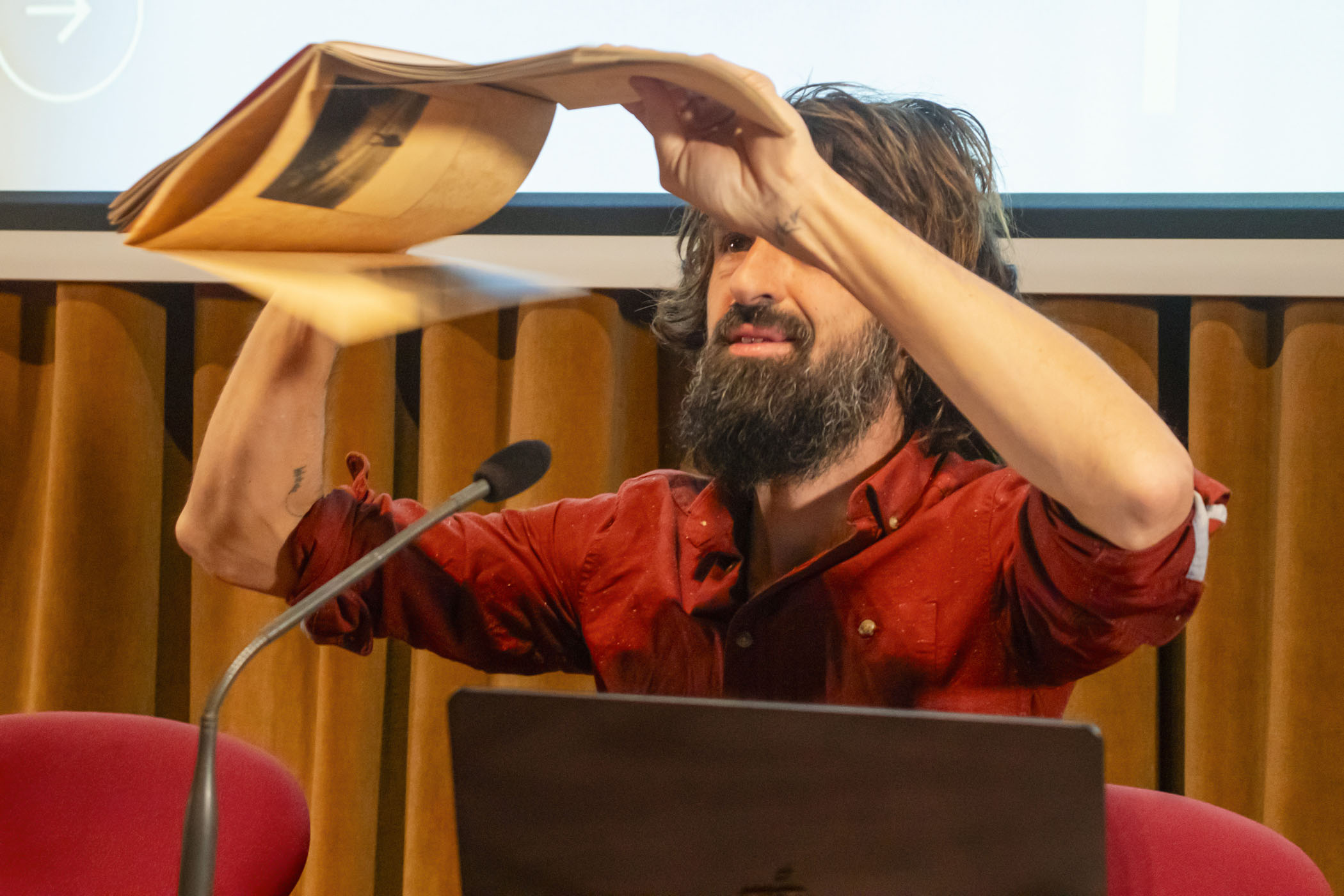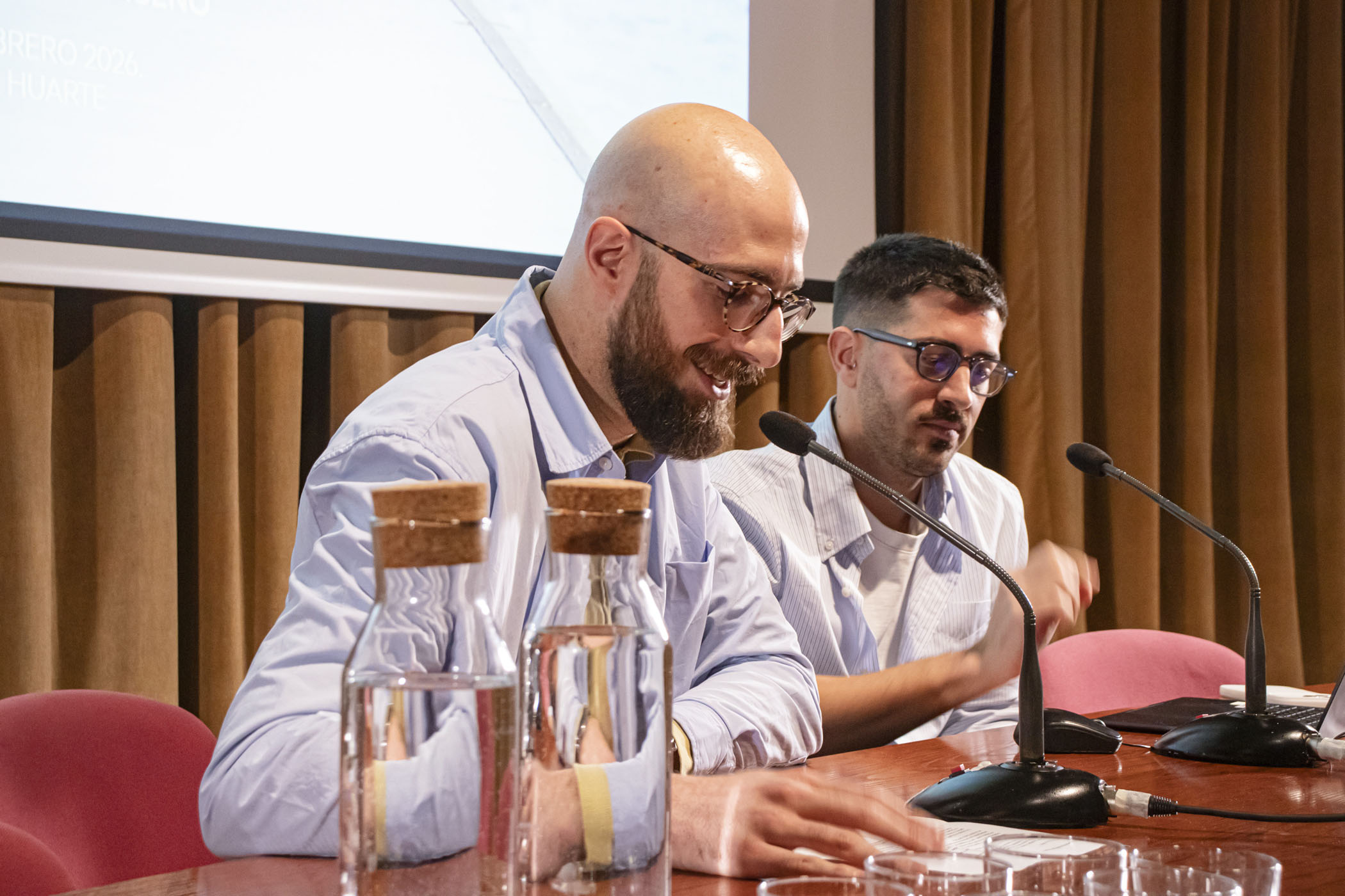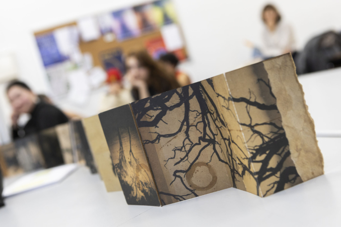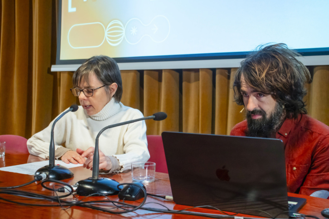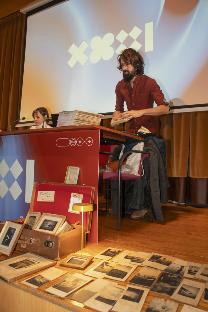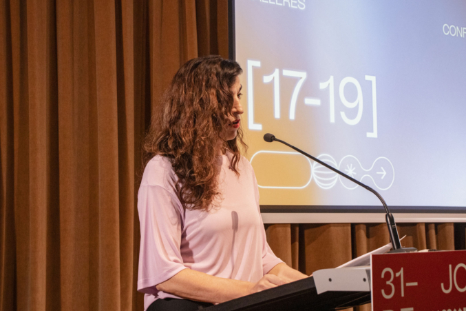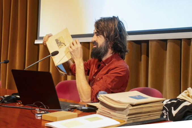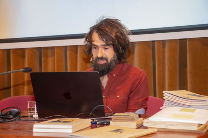 A continuación, el fotógrafo y artista visual Juanan Requena presentó su trabajo editorial y artístico, marcado por una cuidada elaboración artesanal de libros de artista. Cerró la jornada de ponencias la artista visual Mabi Revuelta, con una reflexión sobre su práctica artística que culminó con la proyección de una pieza audiovisual.