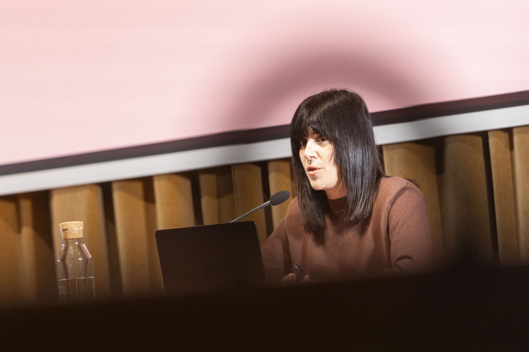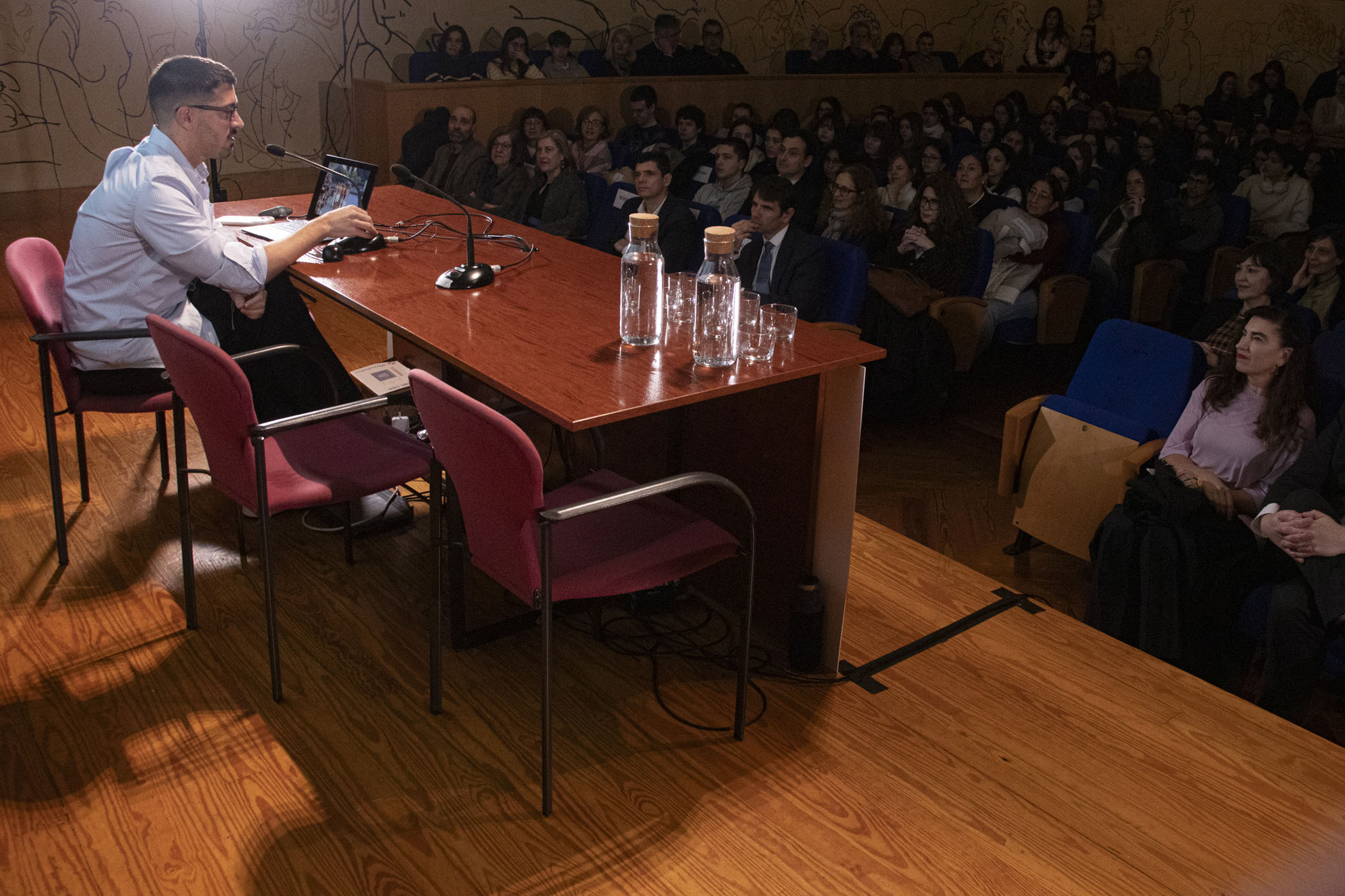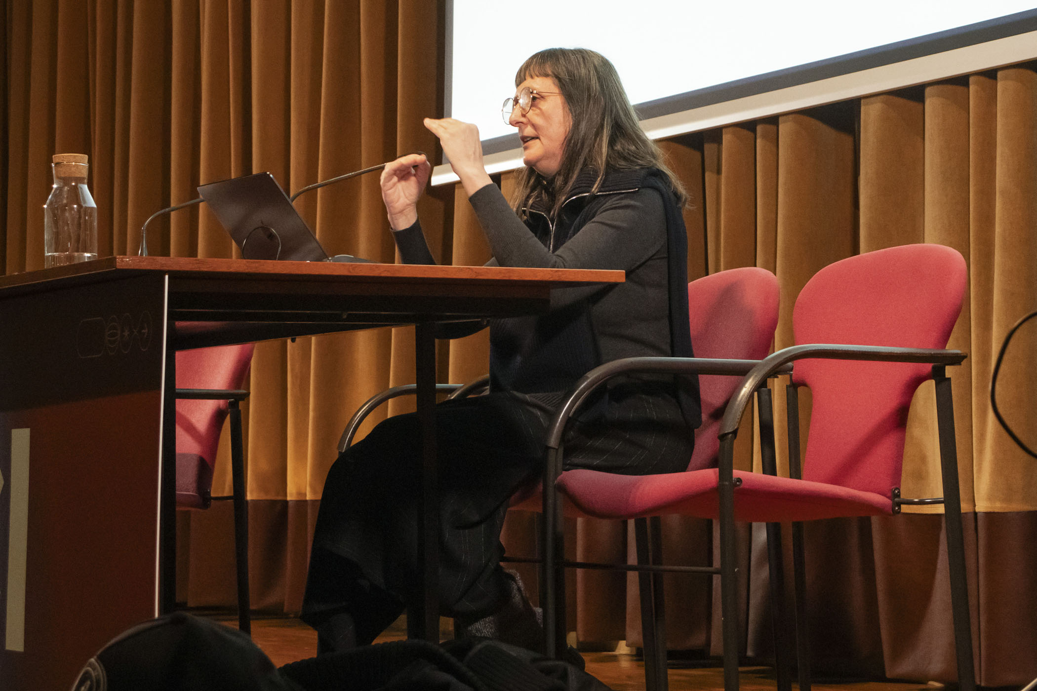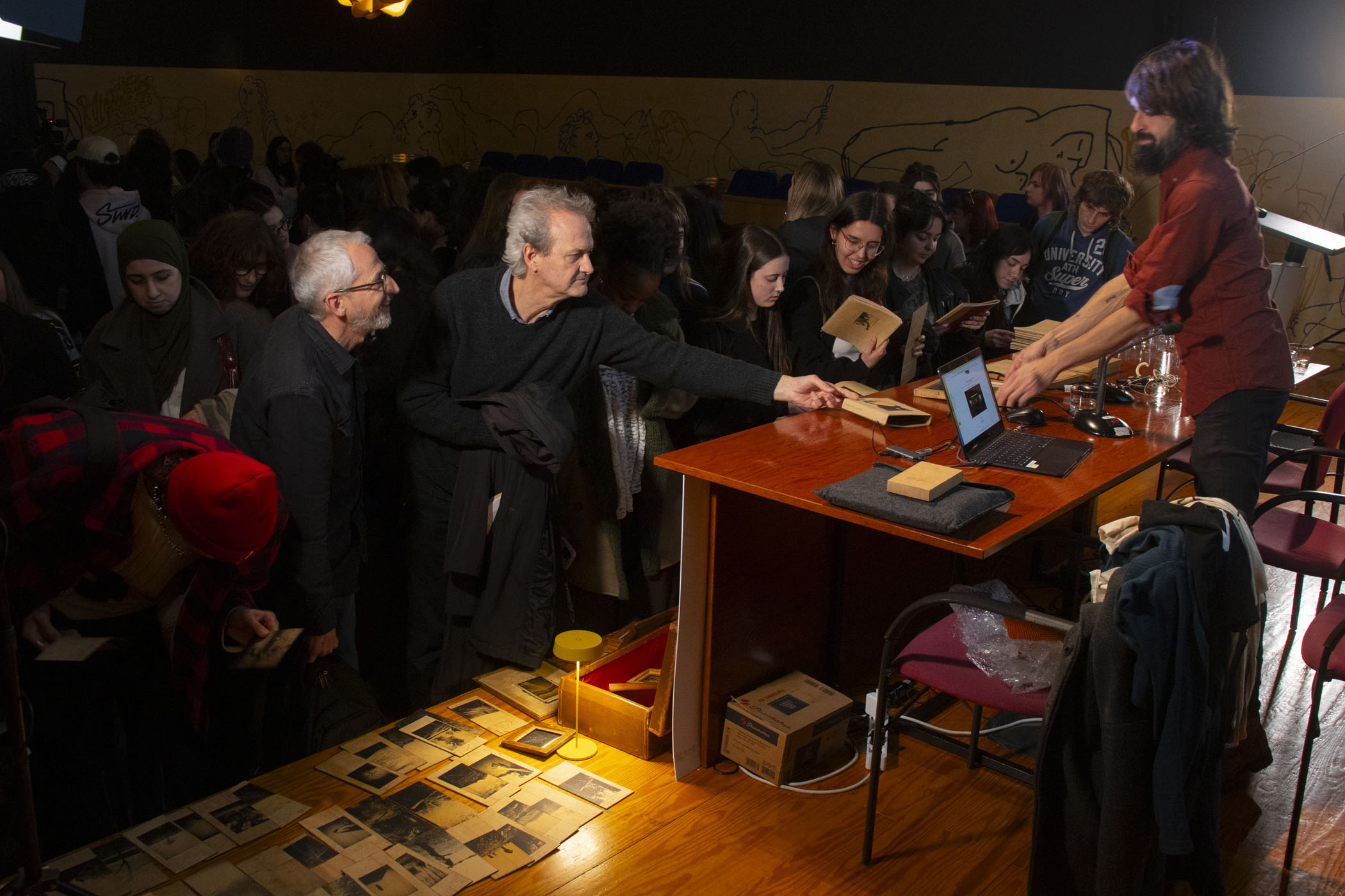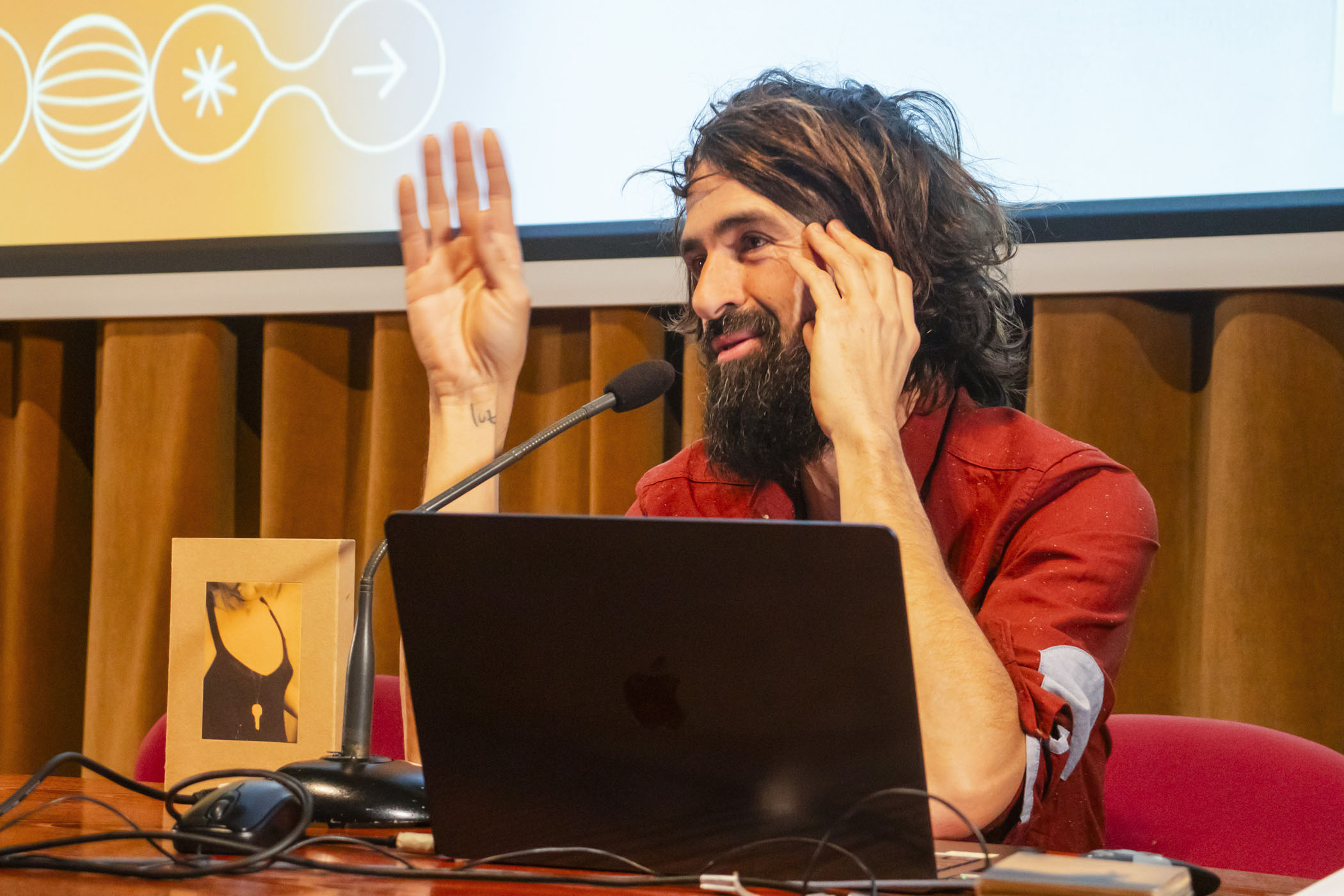 A continuación, el fotógrafo y artista visual Juanan Requena presentó su trabajo editorial y artístico, marcado por una cuidada elaboración artesanal de libros de artista. Cerró la jornada de ponencias la artista visual Mabi Revuelta, con una reflexión sobre su práctica artística que culminó con la proyección de una pieza audiovisual.