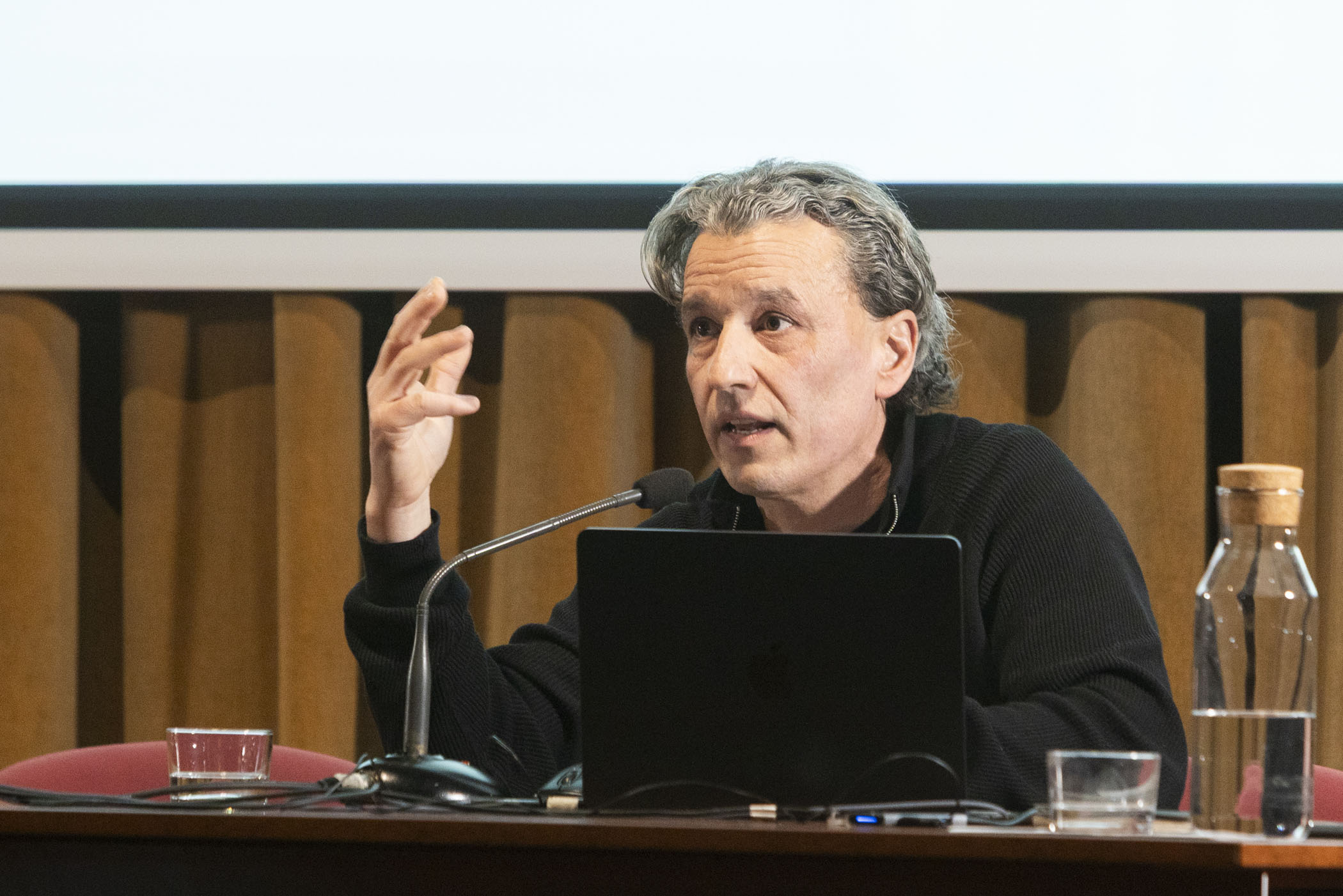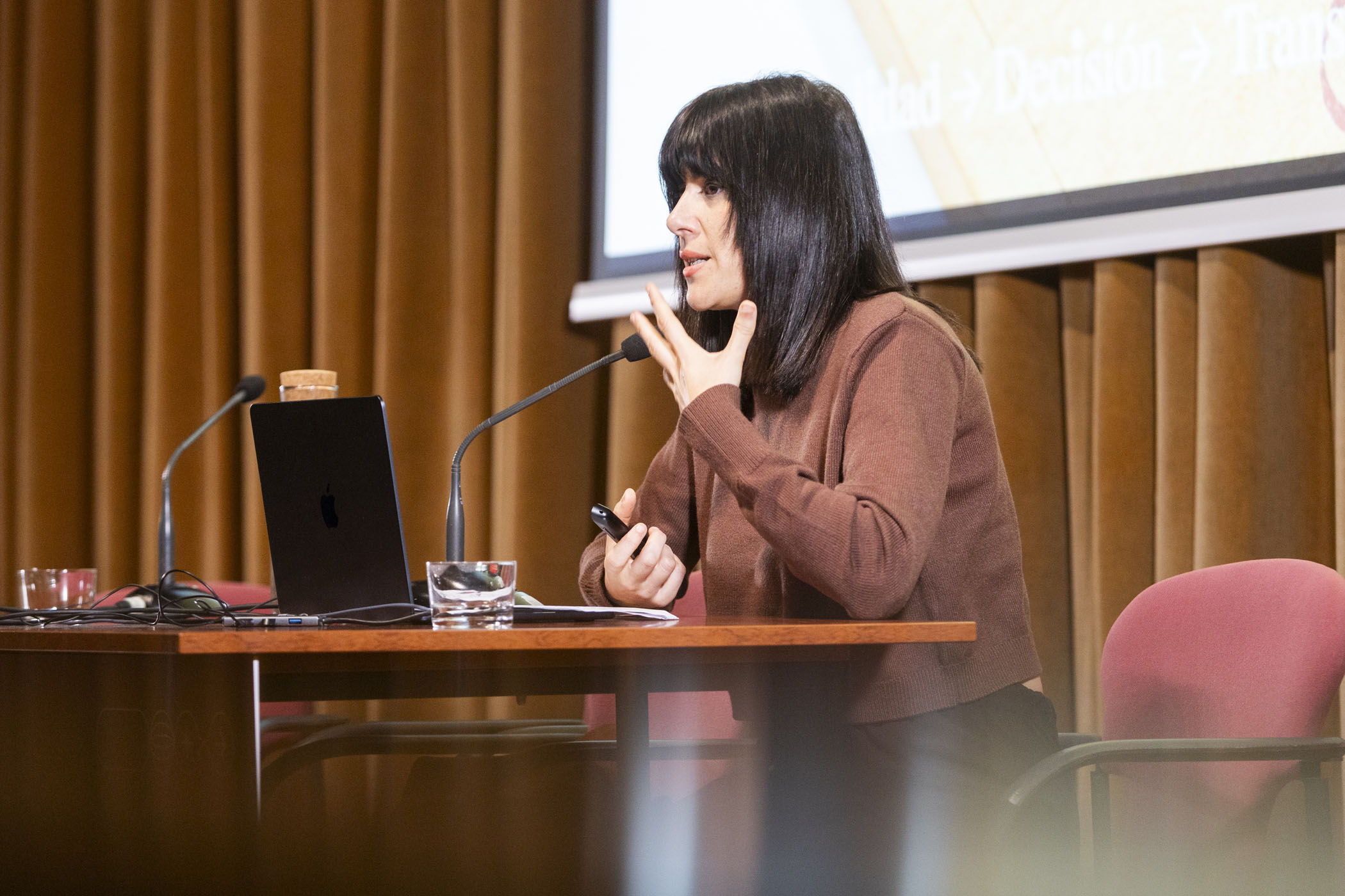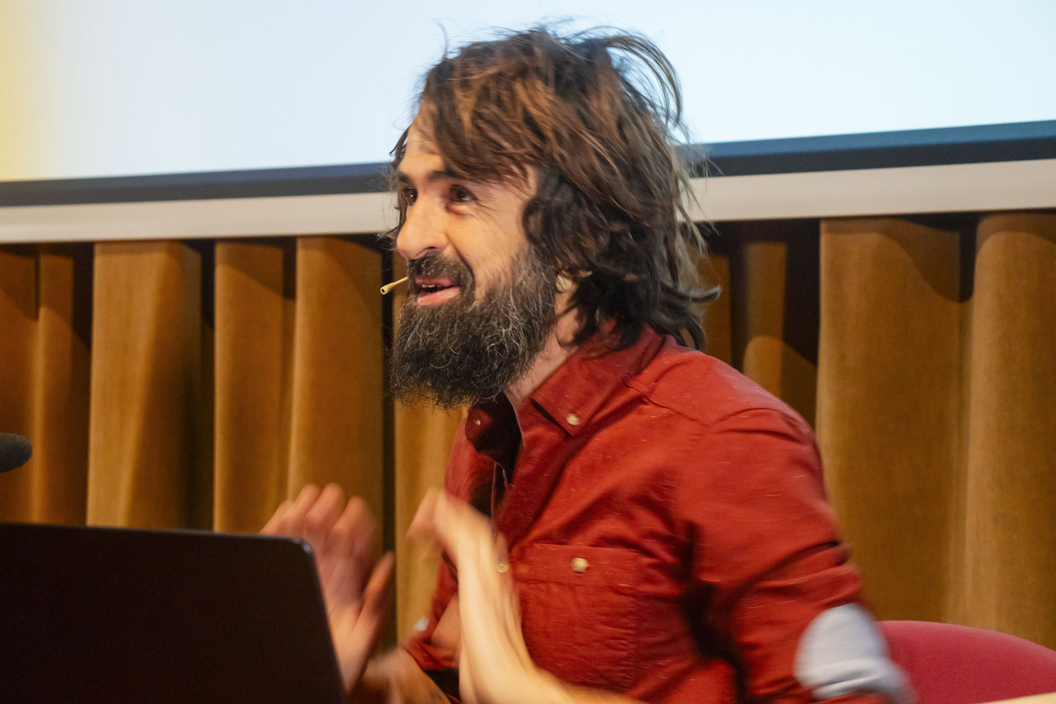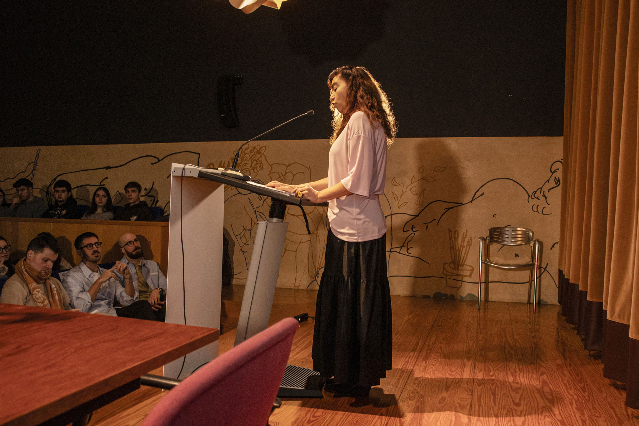 A continuación, el fotógrafo y artista visual Juanan Requena presentó su trabajo editorial y artístico, marcado por una cuidada elaboración artesanal de libros de artista. Cerró la jornada de ponencias la artista visual Mabi Revuelta, con una reflexión sobre su práctica artística que culminó con la proyección de una pieza audiovisual.
