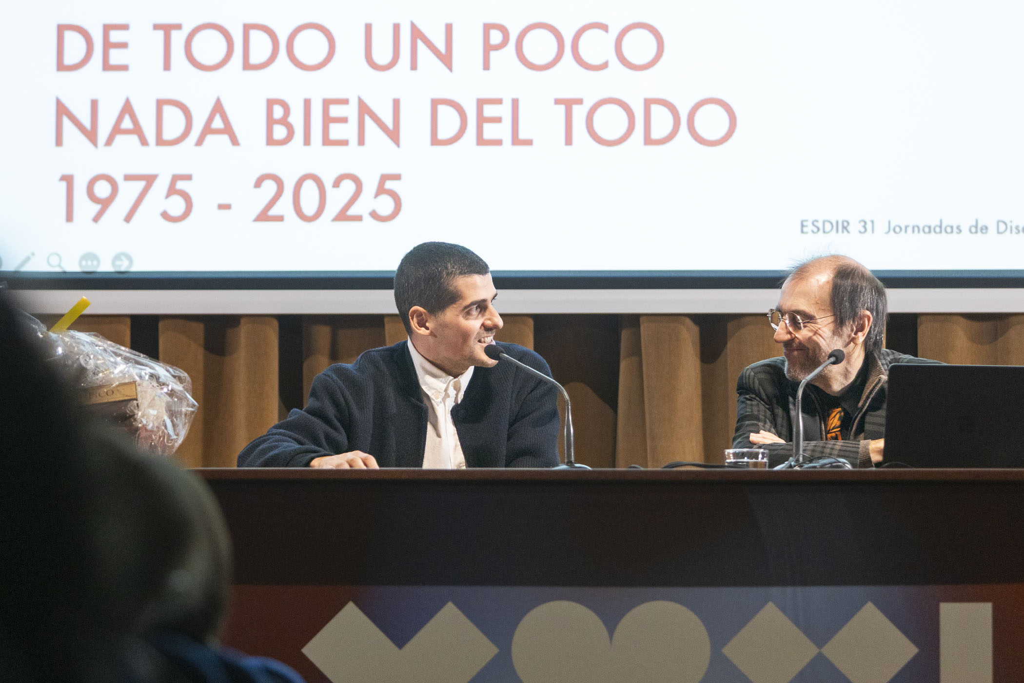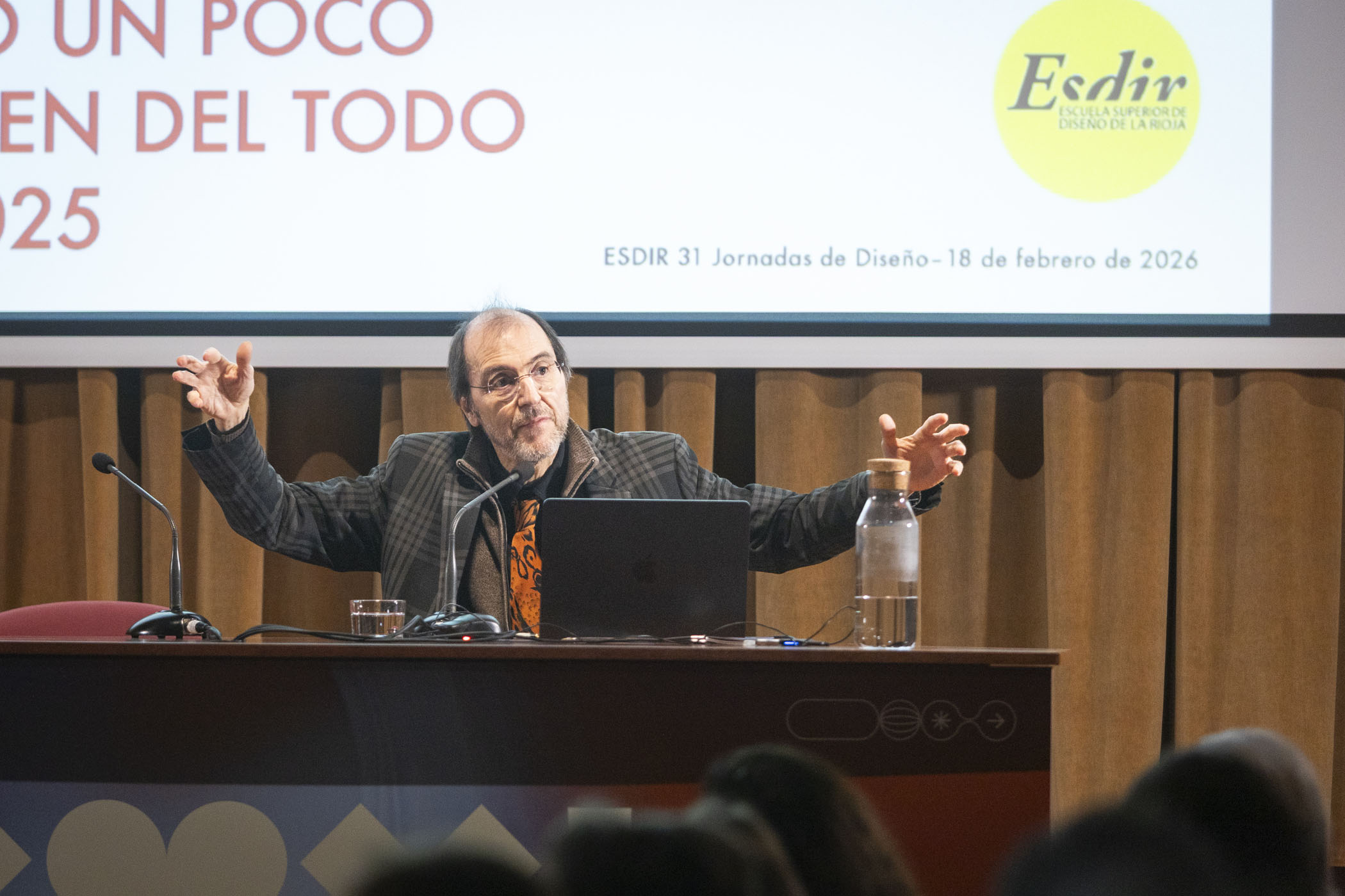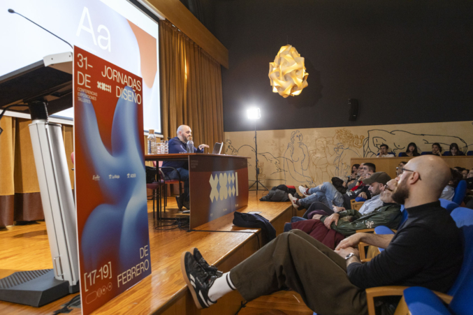 La segunda jornada estuvo protagonizada por Juli Capella, quien ofreció una conferencia en la que repasó su extensa trayectoria como arquitecto y diseñador, aportando una visión amplia y reflexiva del diseño contemporáneo. Posteriormente, el diseñador gráfico Javier Ochoa, también exalumno de la ESDIR y responsable de la identidad visual de las Jornadas, desveló el proceso creativo detrás de la gráfica del evento en una clase magistral.