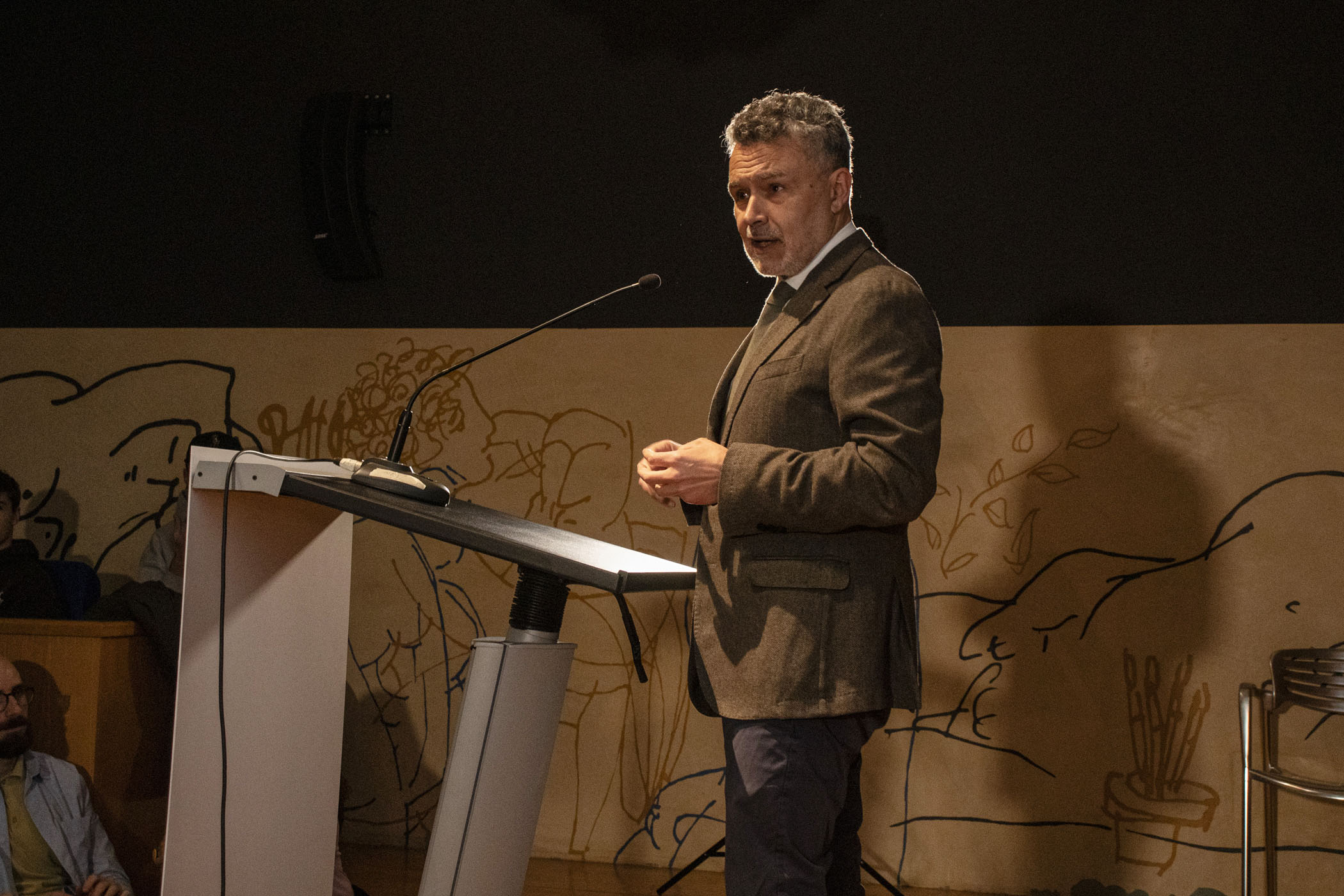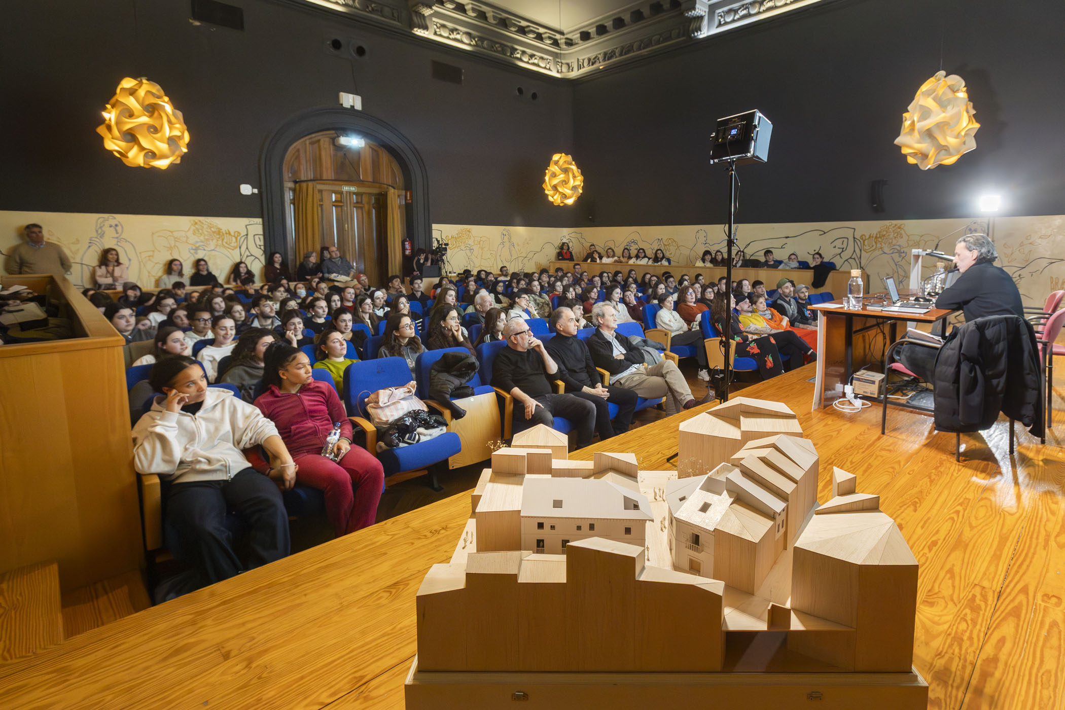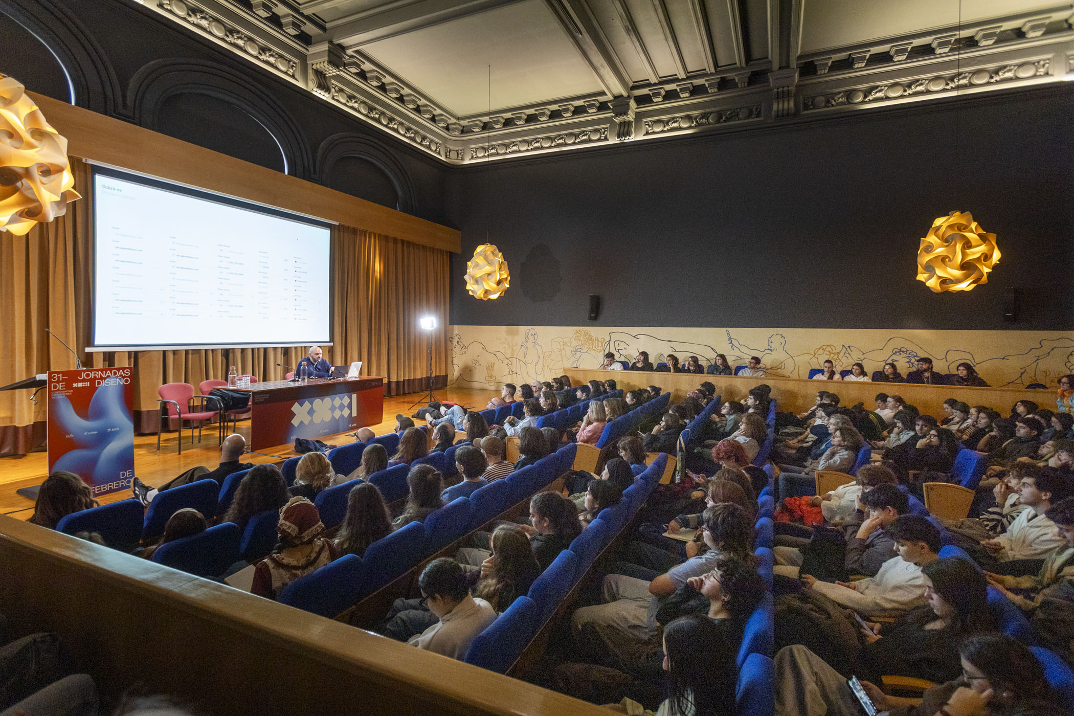 La segunda jornada estuvo protagonizada por Juli Capella, quien ofreció una conferencia en la que repasó su extensa trayectoria como arquitecto y diseñador, aportando una visión amplia y reflexiva del diseño contemporáneo. Posteriormente, el diseñador gráfico Javier Ochoa, también exalumno de la ESDIR y responsable de la identidad visual de las Jornadas, desveló el proceso creativo detrás de la gráfica del evento en una clase magistral.