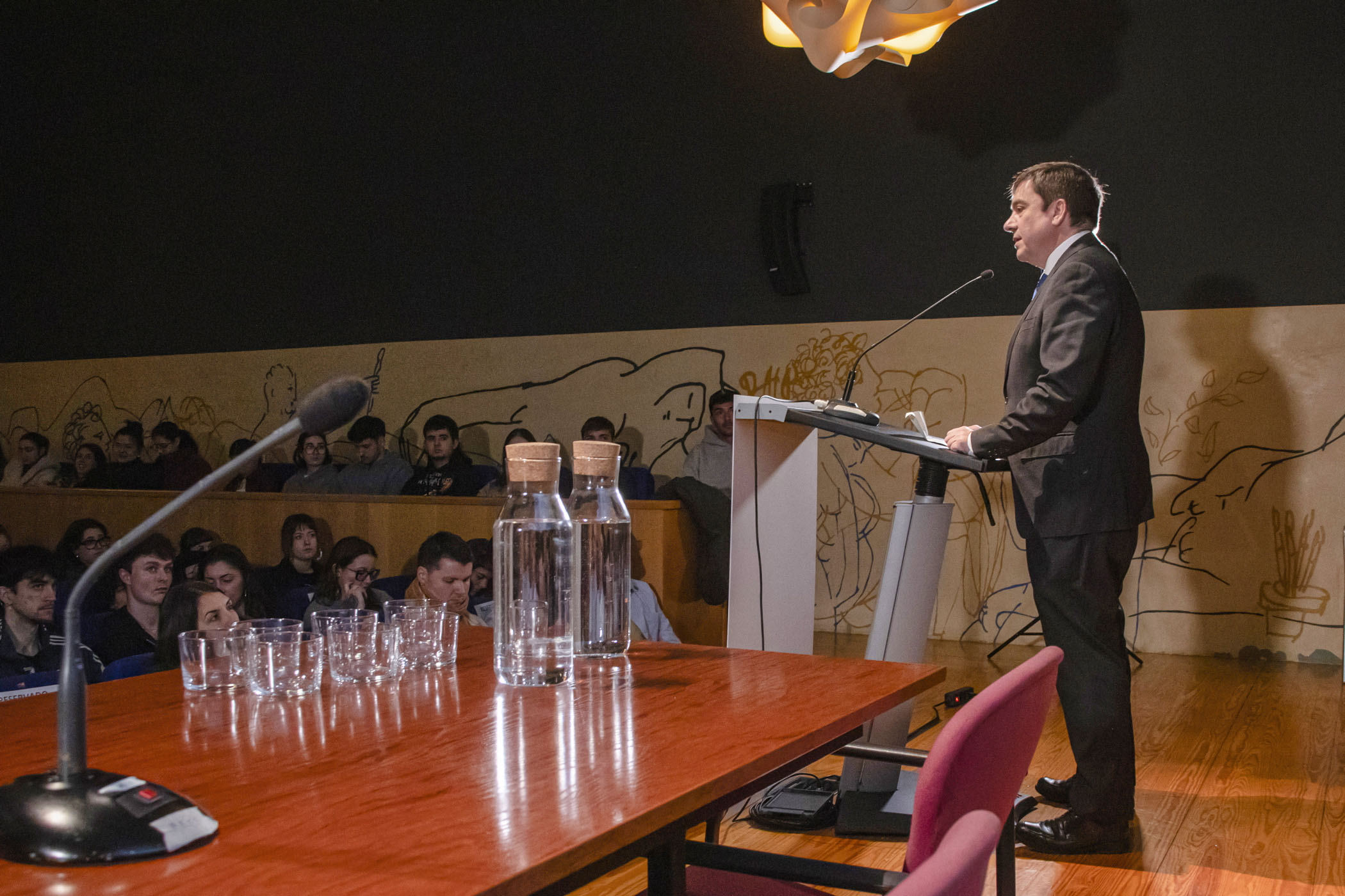 La ceremonia de inauguración contó con la presencia de la Directora de la Esdir, Mónica Yoldi, el Consejero de Educación de La Rioja, Alberto Galiana, el Alcalde de Logroño, Conrrado Escobar junto con la Concejala de Cultura, Rosa Fernández, el Director general de Innovación y Ordenación Educativa, Fabián Martín, así como el Gerente de ADER, Luis Pérez y el responsable de la Unidad de Servicios Avanzados, Miguel García Armentia.