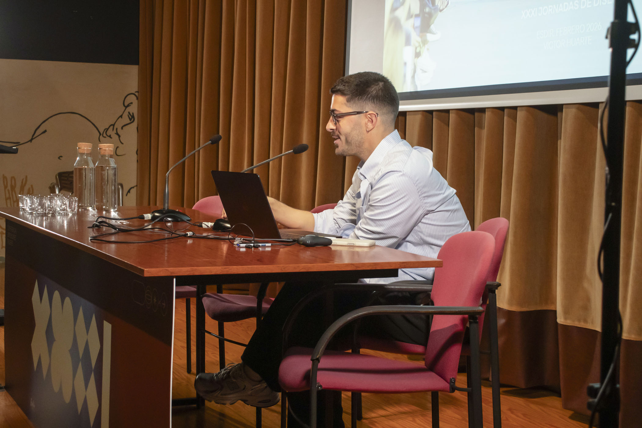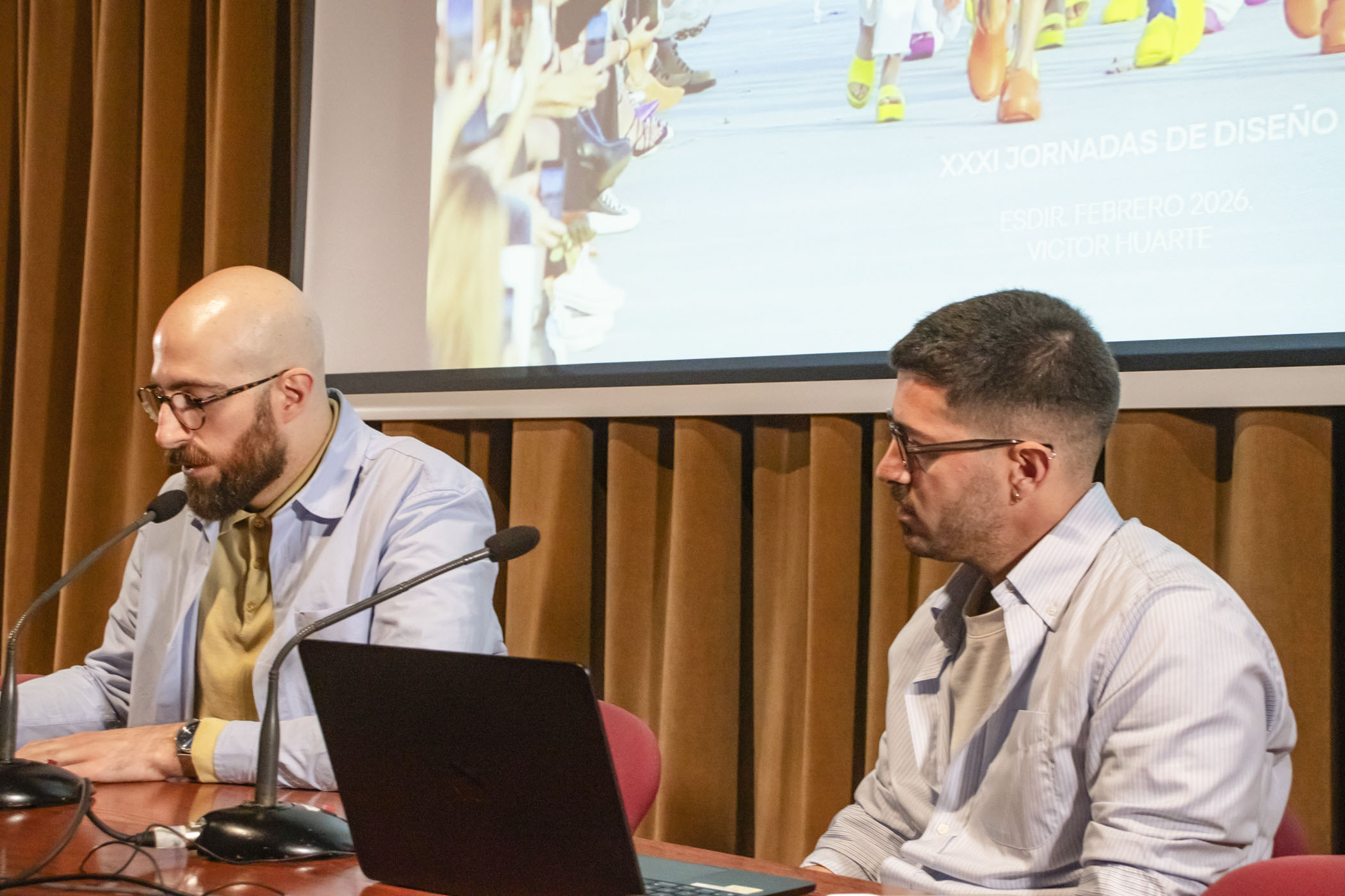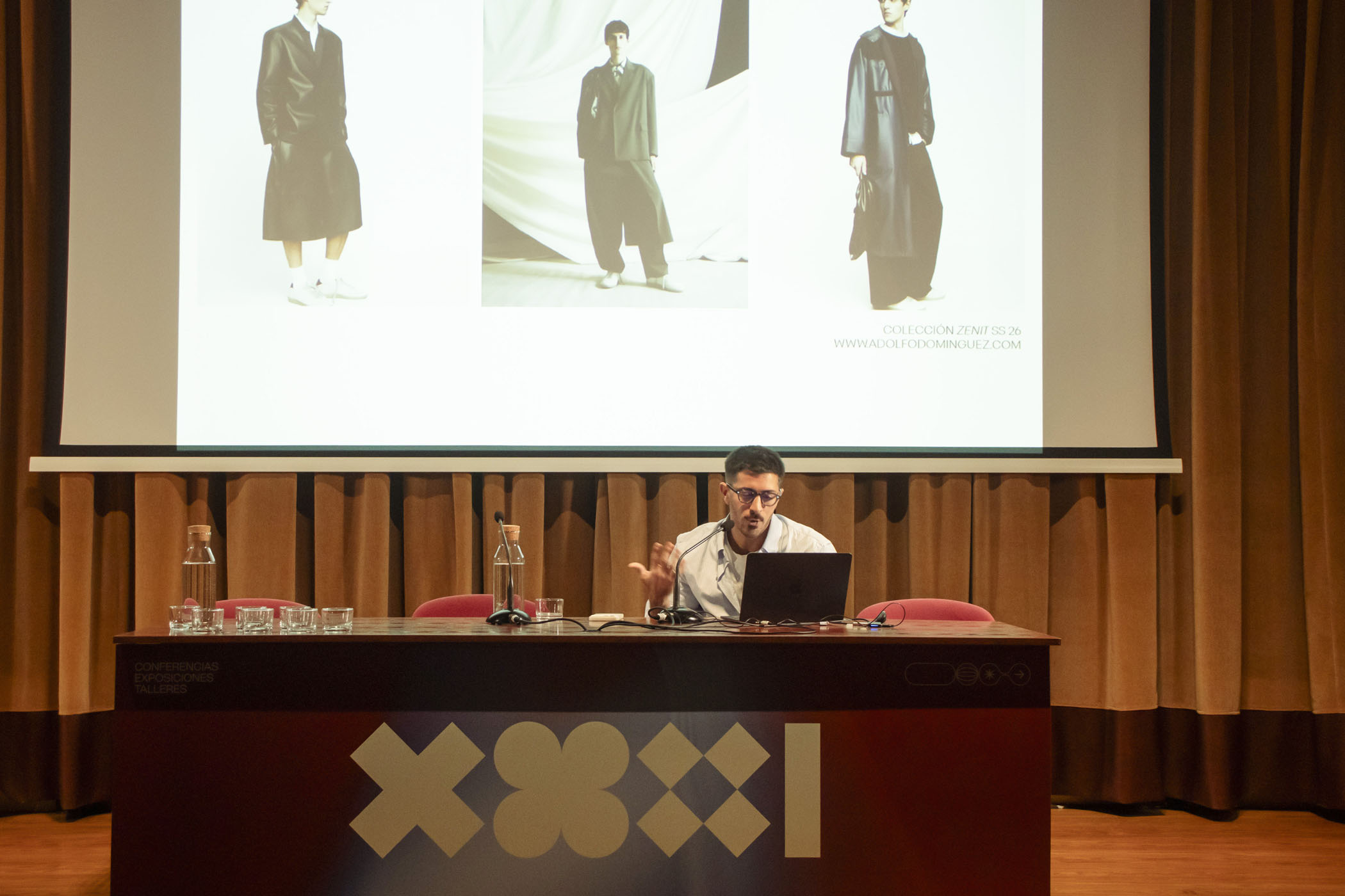La programación de conferencias se abrió con el diseñador de moda riojano Víctor Huarte, exalumno de la ESDIR y actual diseñador senior en Adolfo Domínguez, quien compartió un recorrido por su trayectoria profesional, desde su firma personal HUARTE hasta su experiencia en varias casas de moda, profundizando en los procesos de creación de colecciones.