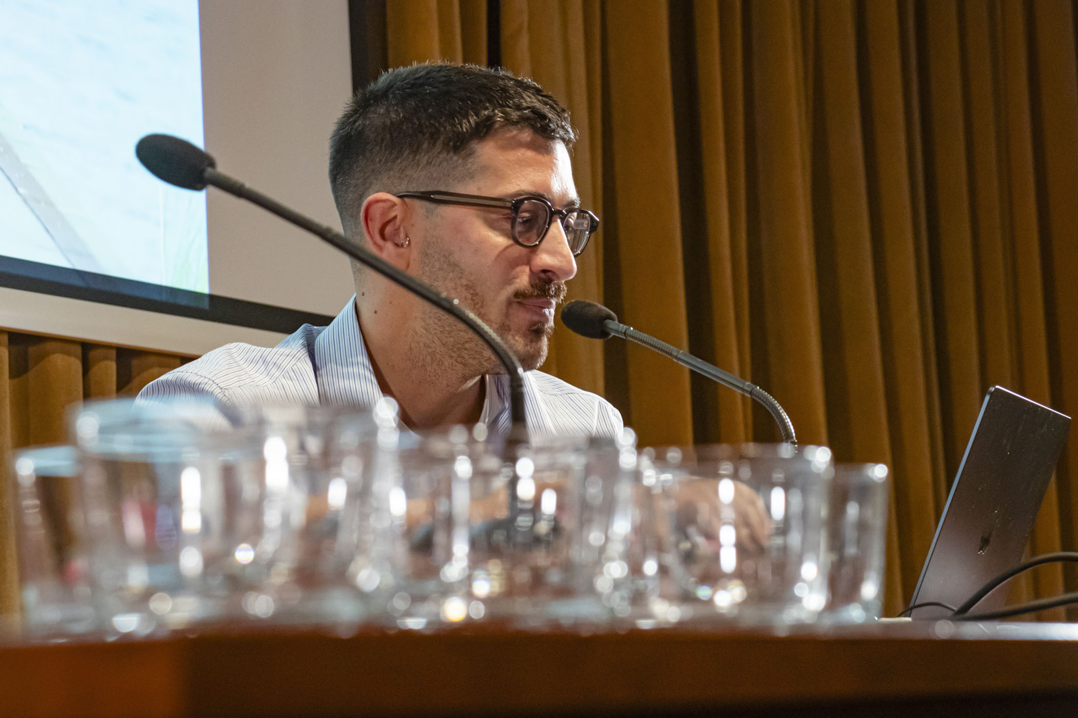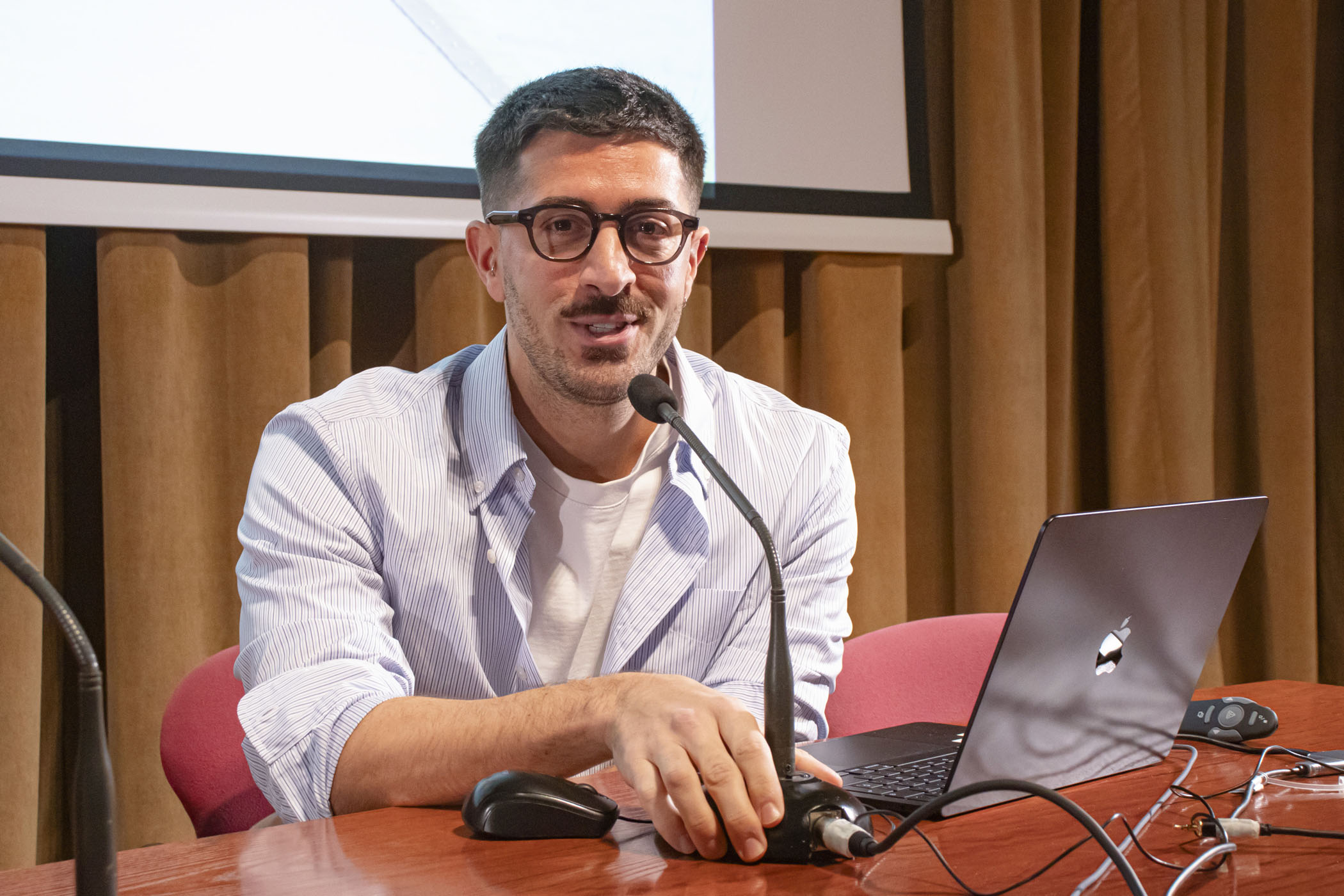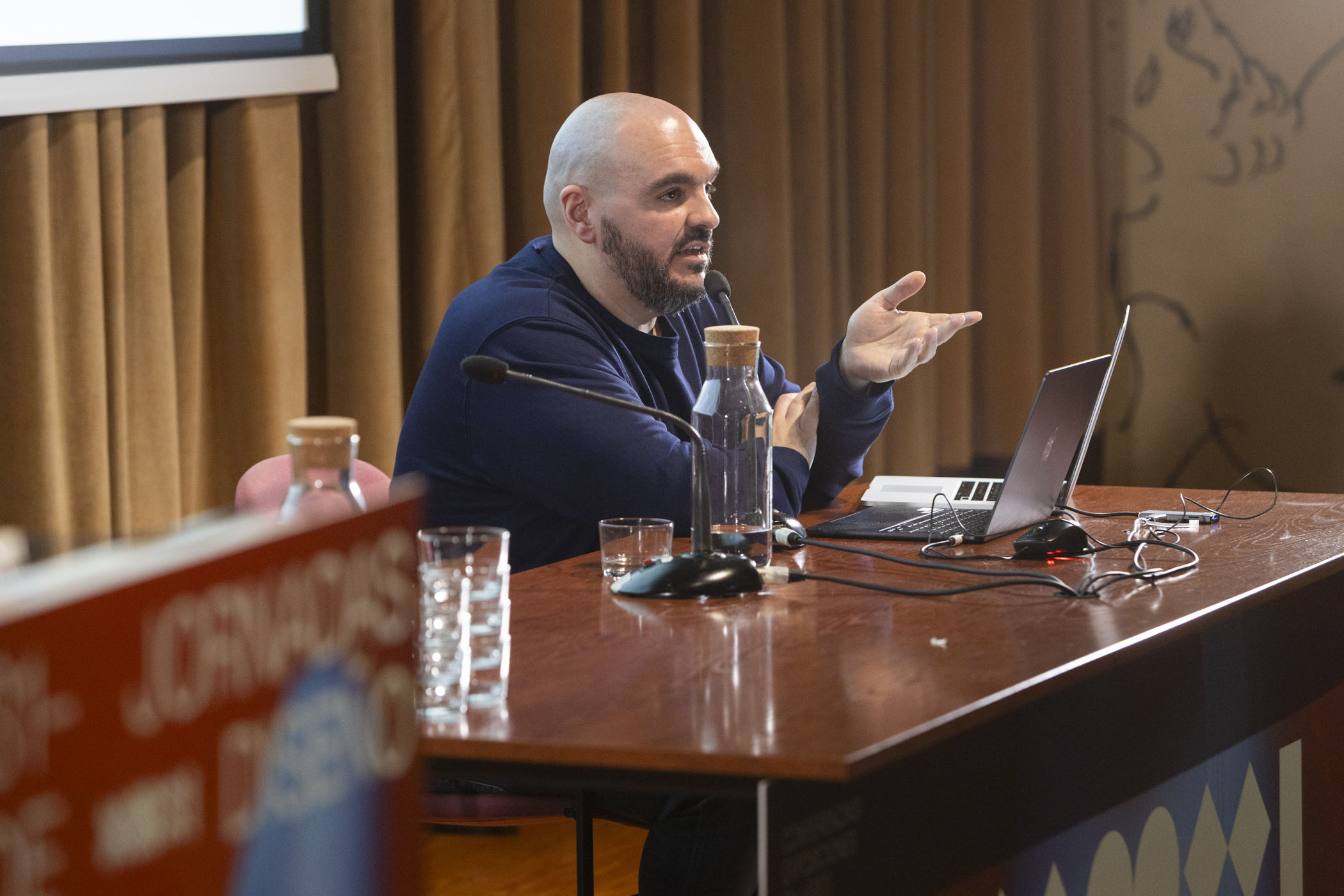 La programación de conferencias se abrió con el diseñador de moda riojano Víctor Huarte, exalumno de la ESDIR y actual diseñador senior en Adolfo Domínguez, quien compartió un recorrido por su trayectoria profesional, desde su firma personal HUARTE hasta su experiencia en varias casas de moda, profundizando en los procesos de creación de colecciones.