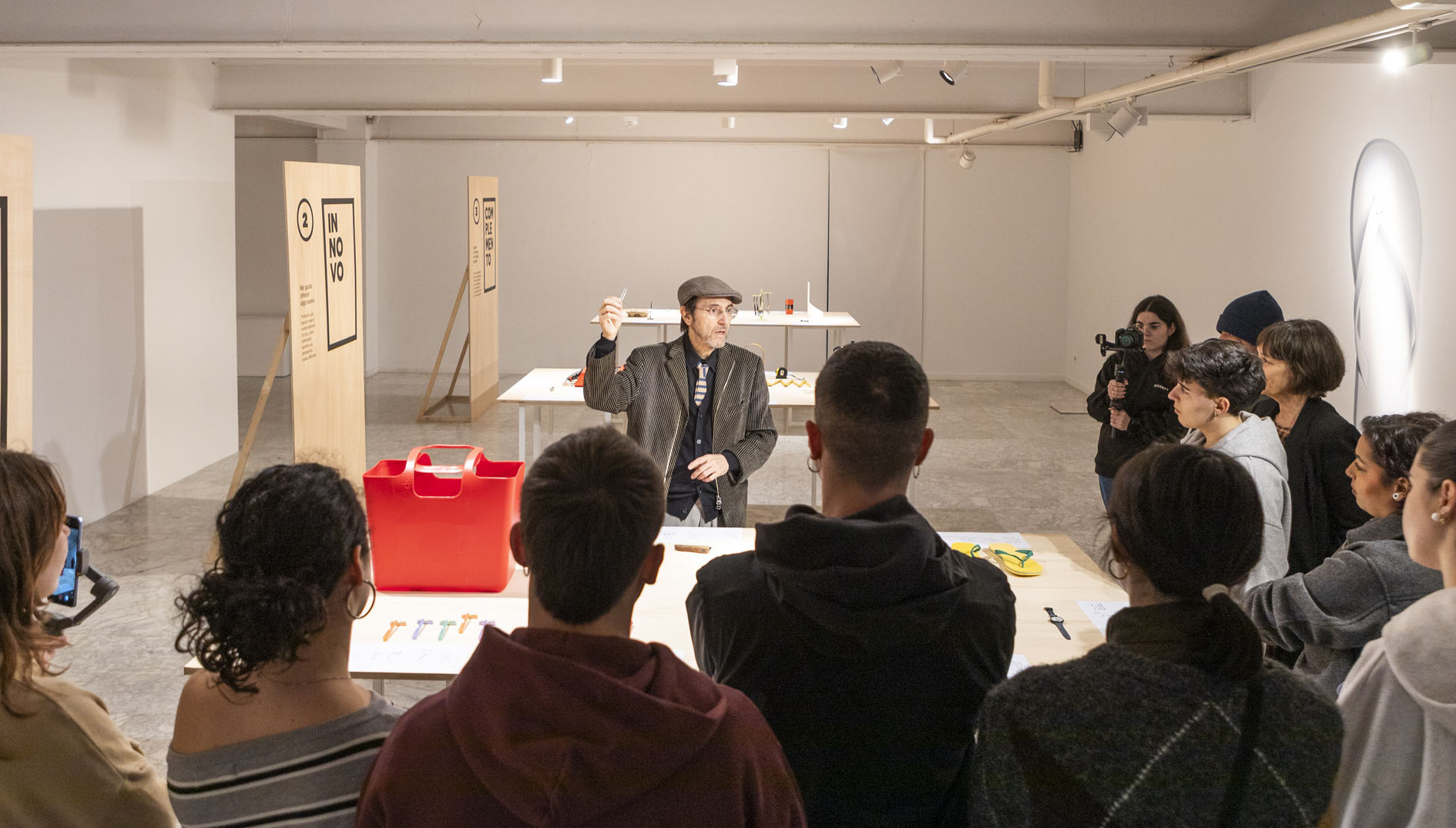 La tarde dio paso a la inauguración de las exposiciones que acompañaron las Jornadas. En la Sala Grande se presentó ¡Funciono! Porque soy así, una muestra comisariada por Juli Capella con piezas de la Colección Pérez de Albéniz-Bergasa y diseño gráfico de Marta Negre, que propone una mirada crítica sobre la relación entre forma, función y uso en el diseño.