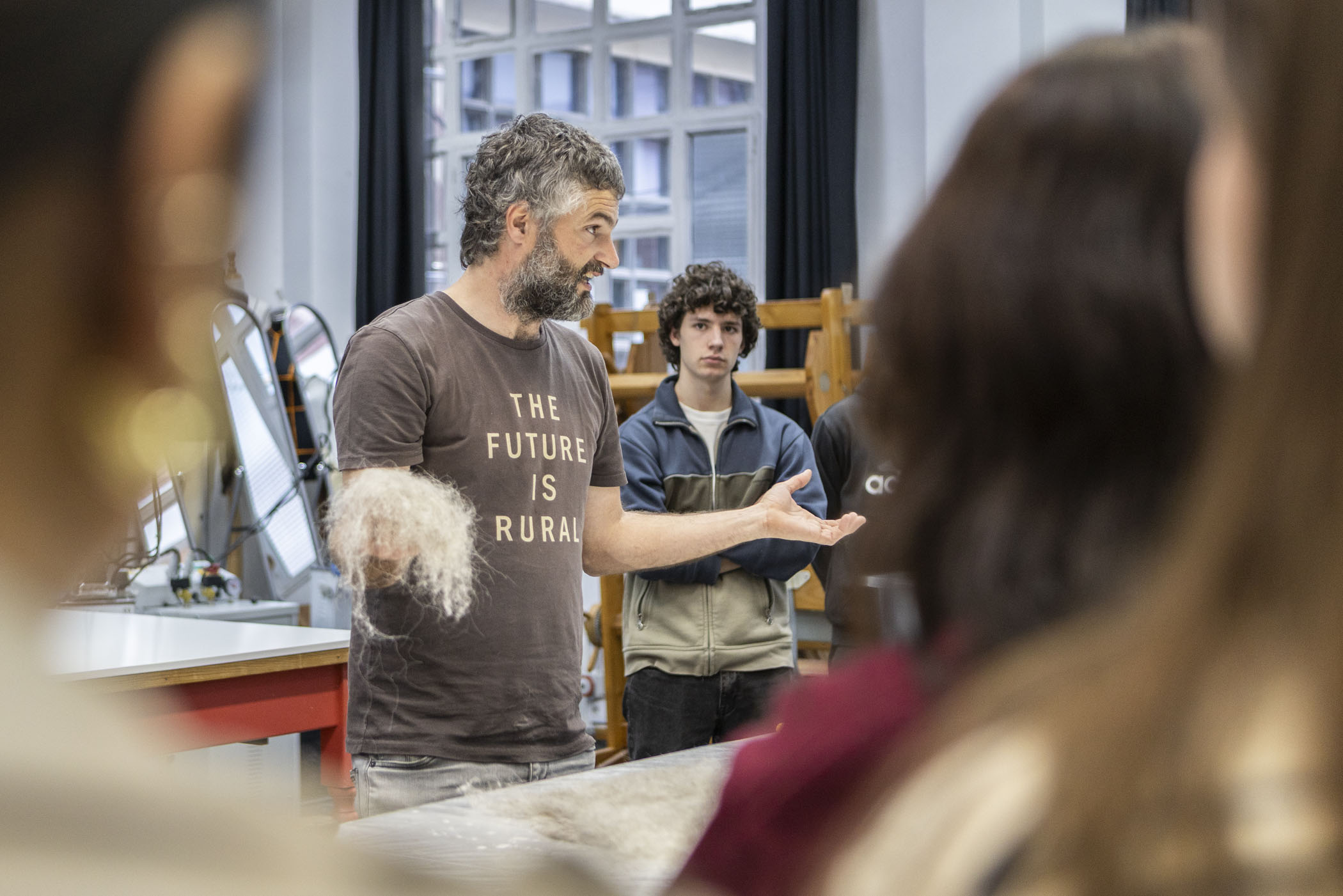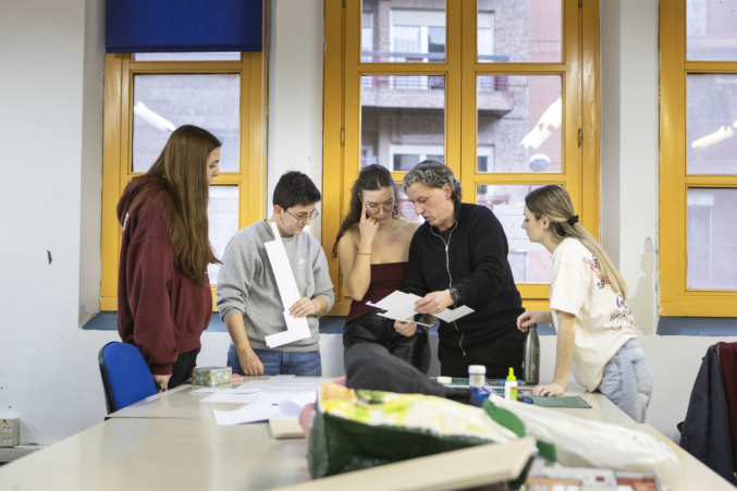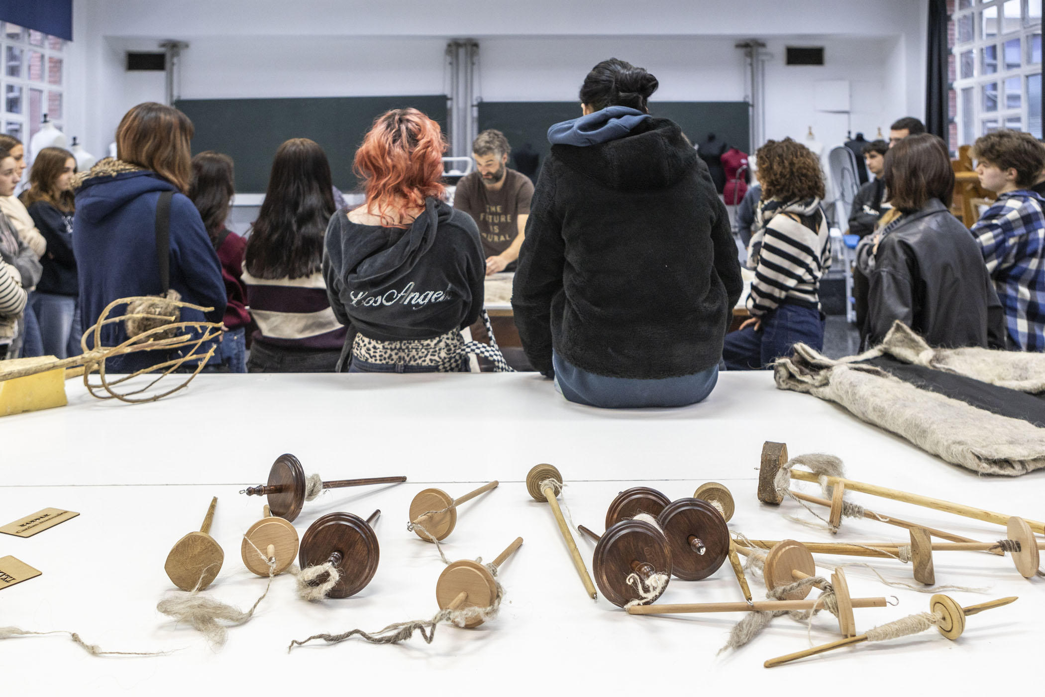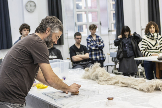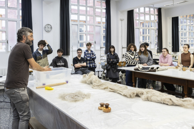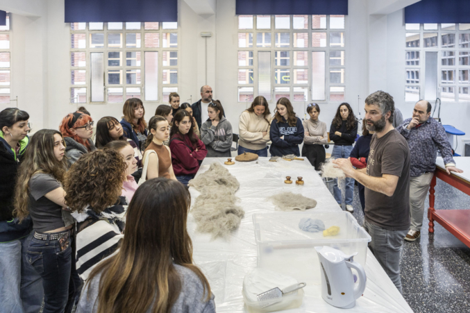 Así mismo, el alumnado de 1º y 2º curso de Producto y Moda participaron en el taller de Mutur Beltz, en que los fundadores de este colectivo de recuperación de lana de Karrantza, Laurita Siles y Joseba Edesa, trajeron un taller sobre uso de lana y desarrollo de productos aplicados a moda y complementos.